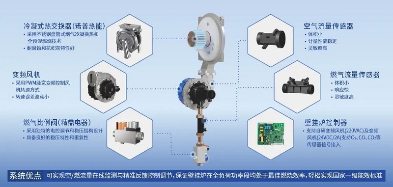 四方光電還推出了ACS智能燃燒系統(tǒng),集成了其控股子公司的燃氣比例閥(精鼎電器)、冷凝式熱交換器(諾普熱能),與四方光電超聲波燃氣流量傳感器、空氣流量傳感器,配合離子感應電機和高調(diào)節(jié)比文丘里,可實現(xiàn)空/燃流量在線監(jiān)測與精準反饋控制調(diào)節(jié),保證壁掛爐在全負荷功率段均處于最佳燃燒效率,輕松實現(xiàn)國家一級能效標準和環(huán)保要求。